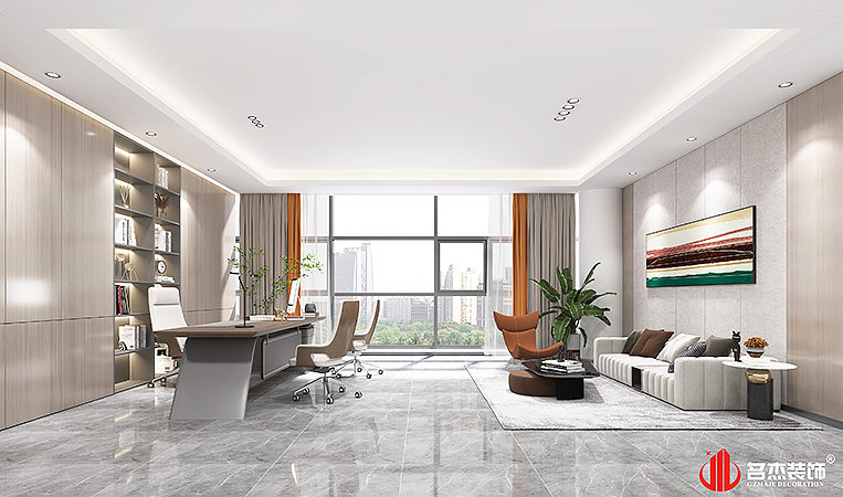 在整個的辦公室裝修設計當中,主要的空間采用土豪金和活力橙作為空間的點綴色,讓空間的設計感層層遞進。同時時尚流行的風格是非常符合化妝品這個行業的,能夠重點突出產品的特點以及特色,使得產品變得更加吸引人。