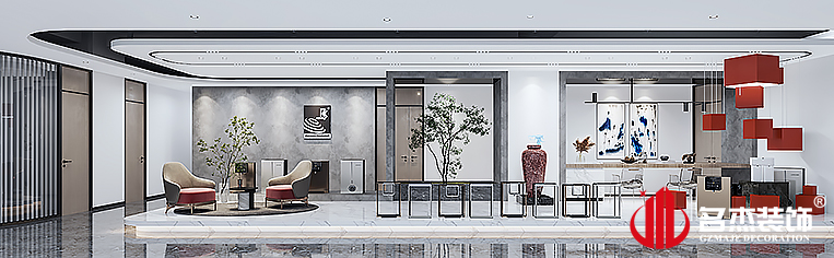 前臺設計方面,加入類似于音響網格的元素,將企業產品的元素加入到其中,增加了大家對企業的印象的同時,還能讓員工感受到企業的良好形象。而在展廳部分加入了一些有設計感的,要素獨特的元素,同時還能增加空間的設計感。