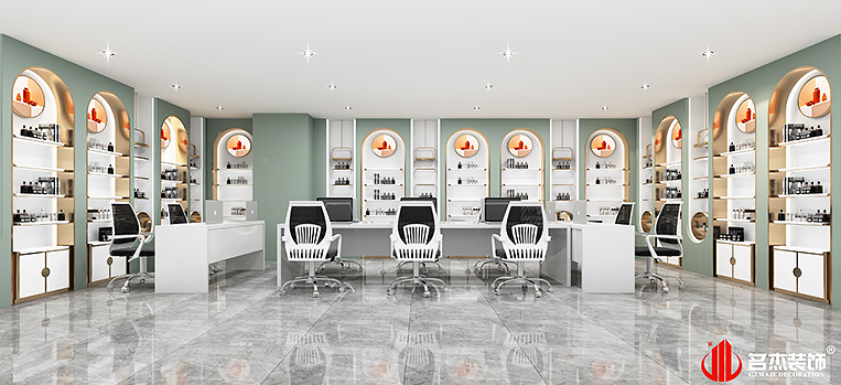 這次的案例是一家主營生產(chǎn)、銷售紋飾制品、化妝品、美甲用品、美發(fā)用品等的企業(yè)。美容美業(yè)行業(yè)是對時尚和美感有著非常高的要求,因此設(shè)計團隊使用時尚流行的元素,構(gòu)建出一個能夠迎合潮流而且也能夠引領(lǐng)潮流的商業(yè)空間