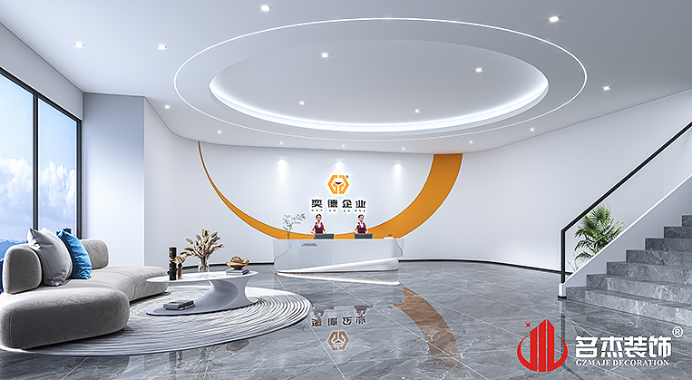 前廳區(qū)域采用企業(yè)的logo色系來作為點綴的色調(diào),加上一點弧形元素來作為空間的點睛設(shè)計手法,同時搭配圓形吊頂,讓整體空間變得更加有趣。其他辦公裝修設(shè)計空間區(qū)域采用的是時尚簡約的風格去搭建,讓簡約的元素能夠進入到每一個角落當中,更好的展示企業(yè)的氛圍。