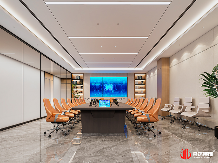 整體裝修設計風格是采用時尚簡約風格的,同時在不同區域加入不同的設計元素,來讓空間看起來更加具有特色。如前臺區域,利用圓弧形吊頂搭配大理石背景墻,同時進入展廳區域的入口使用拱門的形式,這樣搭配出來的效果是非常好的。而在展廳區域則是采用大圓包小圓的設計手法,讓整體呈現效果更加有層次感。#廣州辦公室裝修設計#