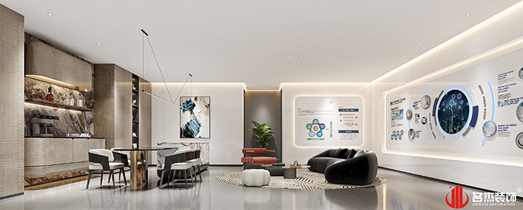 設(shè)計團(tuán)隊采用時尚簡約的風(fēng)格來作為設(shè)計的主導(dǎo)風(fēng)格,在部分區(qū)域的設(shè)計上,采用一些時尚科技的元素作為點綴,讓空間充滿不一樣的氛圍感。同時大面積使用碳晶板,空間的整體性會更加強,而且還能讓設(shè)計層次感更上一層樓。#廣州辦公室裝修設(shè)計#