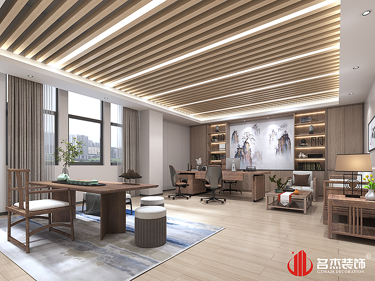 由于該行業(yè)是屬于高新科技行業(yè),設(shè)計團(tuán)隊(duì)在整個辦公室裝修設(shè)計空間加入木色的吊頂,讓空間的格調(diào)不再屬于冷色調(diào),同時在部分區(qū)域加入科技的元素,響應(yīng)出該行業(yè)的科技屬性。在展廳區(qū)域則是特意使用上多邊形的木色吊頂,沿著動線來構(gòu)造,形成一種呼應(yīng)。